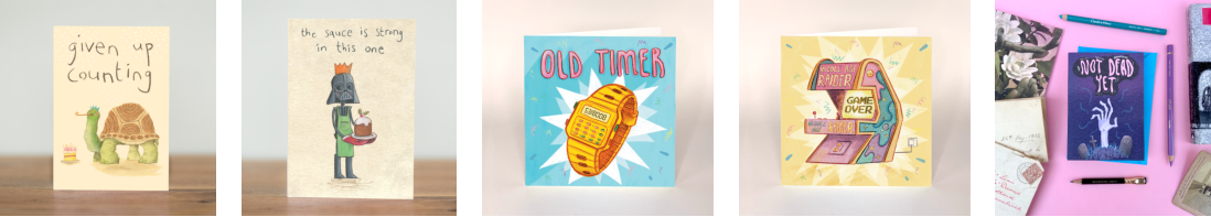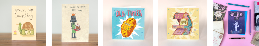He is an independent publisher of humorous greetings cards, that delve into popular culture and appeal to that tricky to buy for demographic, men!